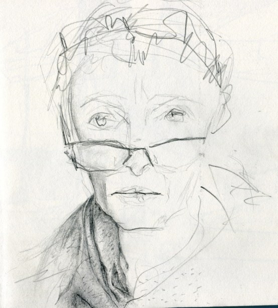 His face is turned toward the past.