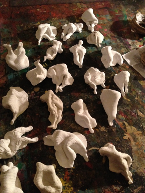while the pile of debris before him grows skyward.