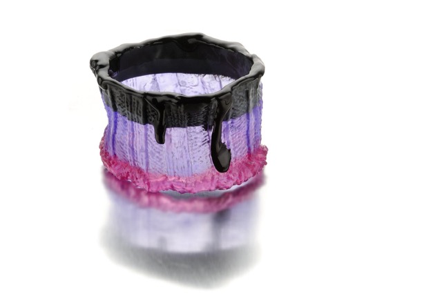 My bracelets, called Identity Crises are textile turned to metal or plastic. Textile my preferred material, soft and accommodating becomes hard and stiff, everlasting (maybe) colourful and lots of fun.